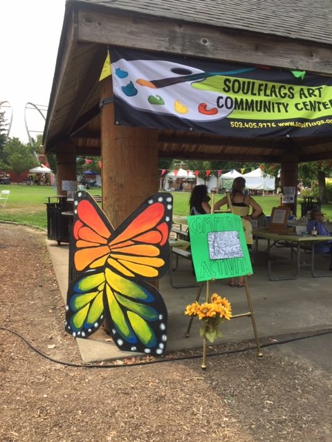 As the event coordinator, I would like to give kudos to our committee members who put in hours of planning to make this happen! Several members like Melody Bush were behind the scenes posting on Social Media daily. Yelena Shabrova kept all the applications and communications current. Ingrid Aubry used her magic creating our postcards, posters, banners, programs, and billboards for the event. Nancy Graham kept the financial information current along with those boring insurance details! Susan Woodworth signed up the music and food vendors, while being a vendor in the event and a television personality for our KATU commercial. Cathy Rowe manned the Silent Auction again this year and did her magic with the online bidding and gathering the auction items. Thank you to Tima Carlson and Soul Flags for hosting the Children’s Art activities. Lynne Collum created the artist booth signs and badges this year. Tamara Scott was the keeper of the key for the Storage Unit and always ready to help move supplies. Last but one of the most important committee chairs was Kerry Edwards who set up the volunteers for the festival. Kerry was invaluable and worked with me coordinating this event. She went above and beyond setting the volunteer schedules, she was my right hand in organizing the event! She always had a smile on her face even when trying to go in 2 directions at the same time!