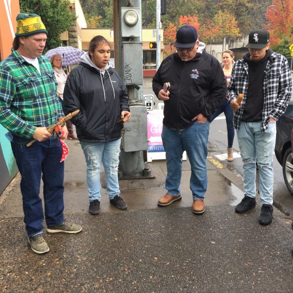 Brian and several family members sang a song in remembrance of the Willamette Falls and how the falls has been an integral part of the Indigenous peoples of the Willamette Valley for thousands of years. The mural is located on the White Rabbit bookstore on the corner of Main Street and 99E.