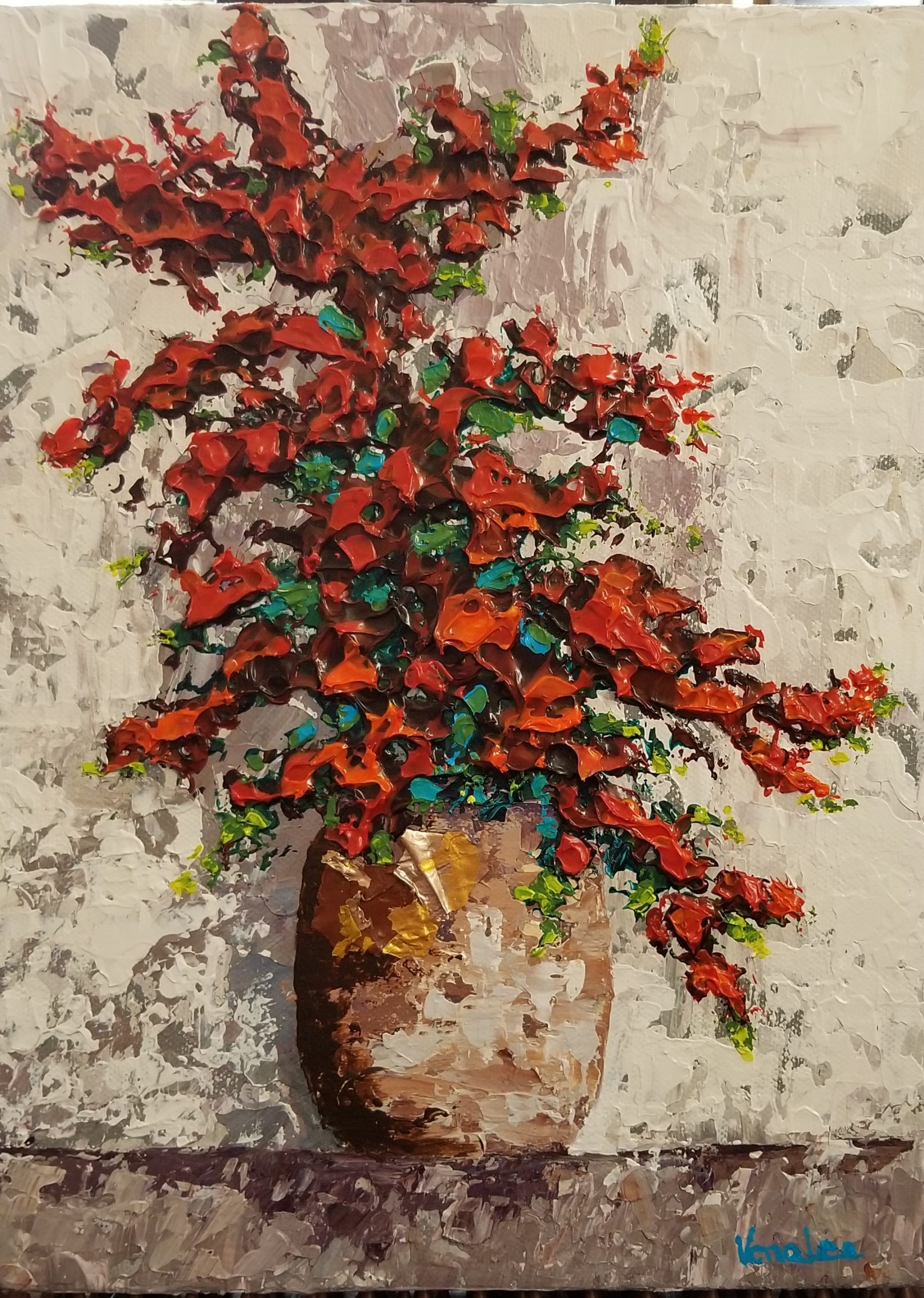 With Joint issues I have had to adapt to a different style of painting using palette knives and thick paint to achieve a textured look to my paintings.