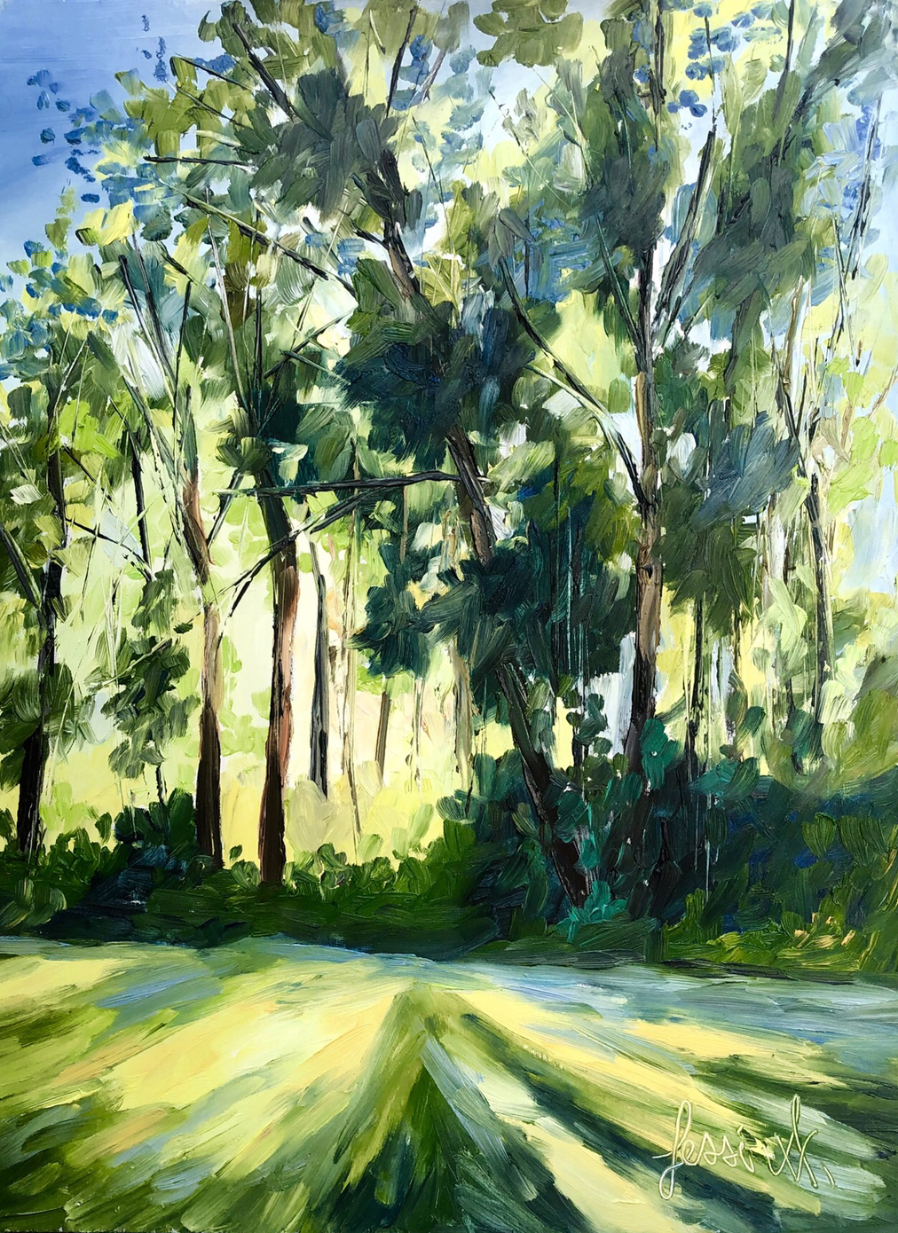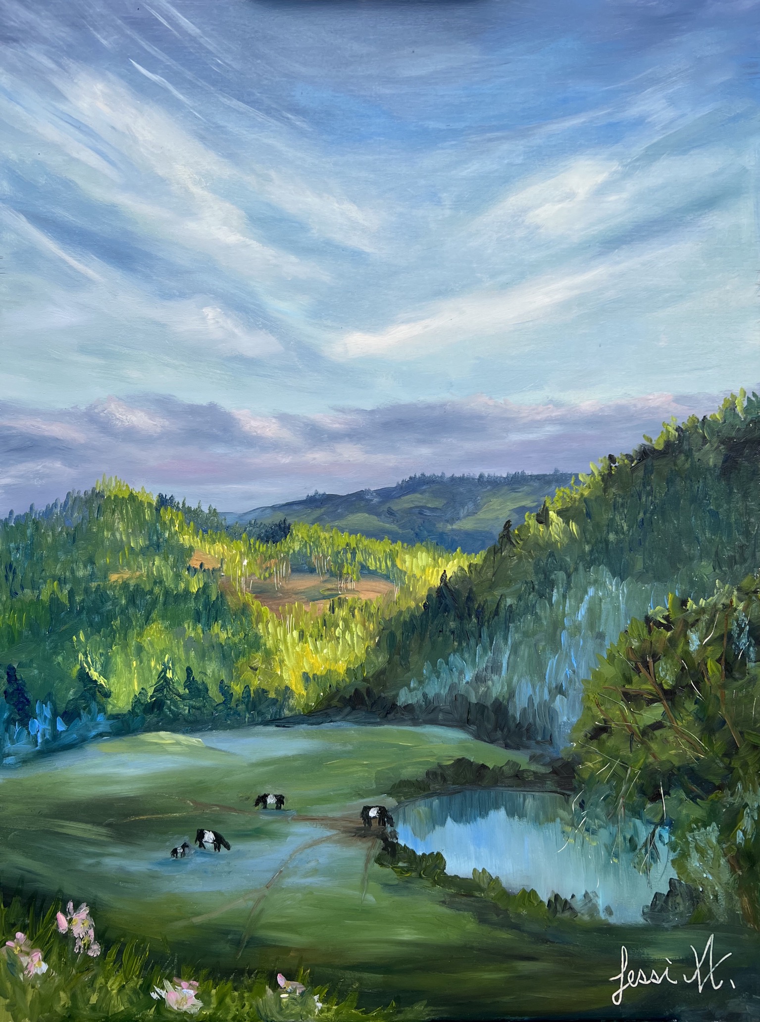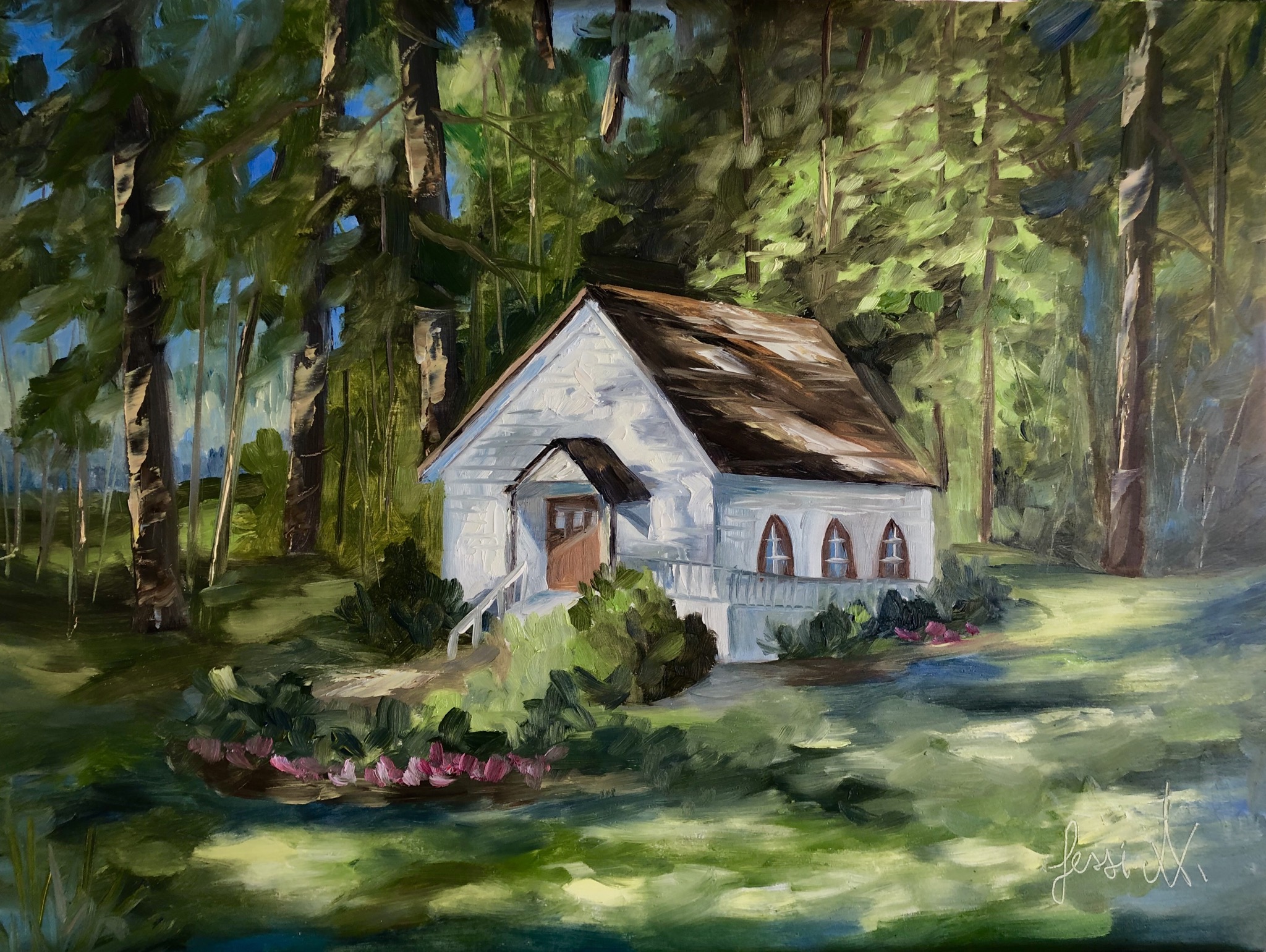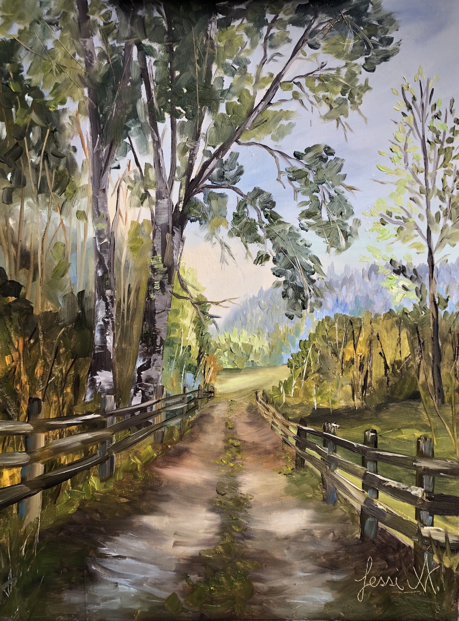 Owning one of Jessi’s oil paintings will excite you to see the beautiful countryside through the eyes of an artist. When not painting outdoors, she also enjoys to paint still life’s in her studio. Her oil paintings will forever be cherished and will continue to inspirit others to see the beauty in their own lives.