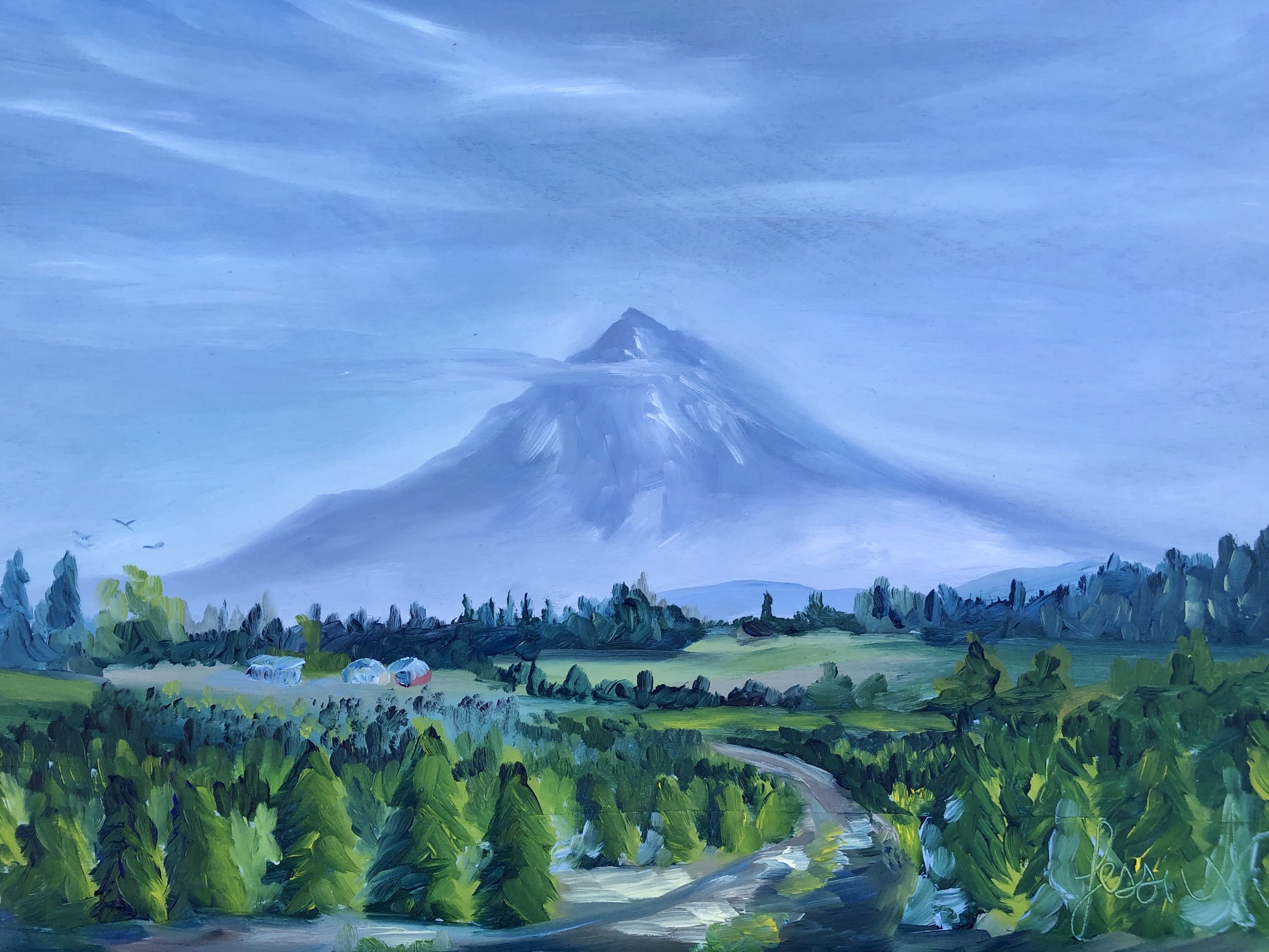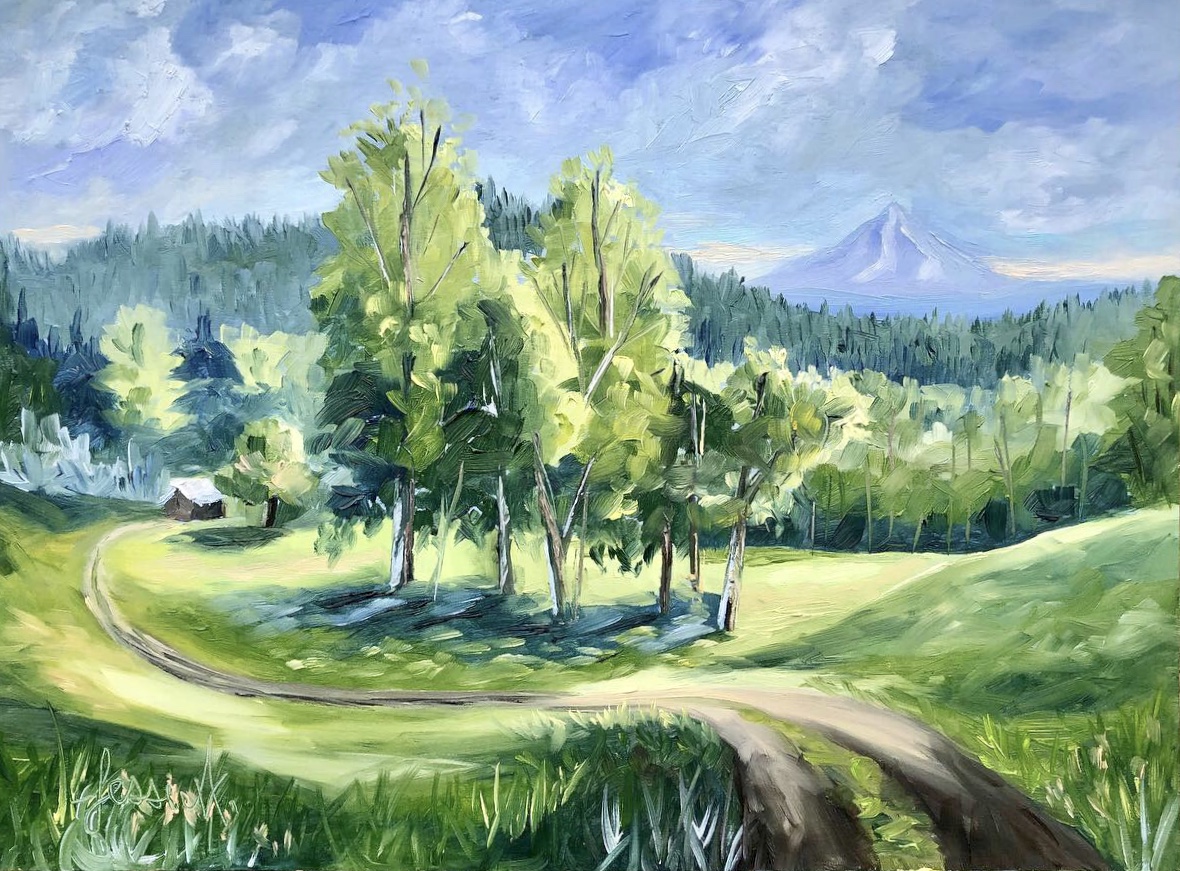 A majestic glow on Mt. Hood or sun rays gleaming through the leaves of a tree sparked Jessi’s desire at an early age to paint the captivating light she saw. She has been creating vibrant oil paintings of her local area allowing you to see the beauty of her day to day ranching life. The brushstrokes in her artwork connect you to the farm land in a soulful way. You are awakened to a different lifestyle and envision living the life of ranching when studying her artwork. Through observation of the land, delicate details are woven into her paintings.