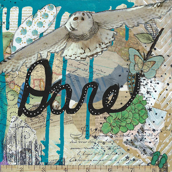 Tamara Scott is a mixed media artist who uses decorated papers, papers that she creates herself using a gelli plate, acrylic paint, paint pens, stamps, stencils, and oil sticks to create her pieces. Bright and whimsical are words that have been used to describe her work. Tamara create individual pieces, but recently created a series of Sea Life paintings and a Four Seasons series.